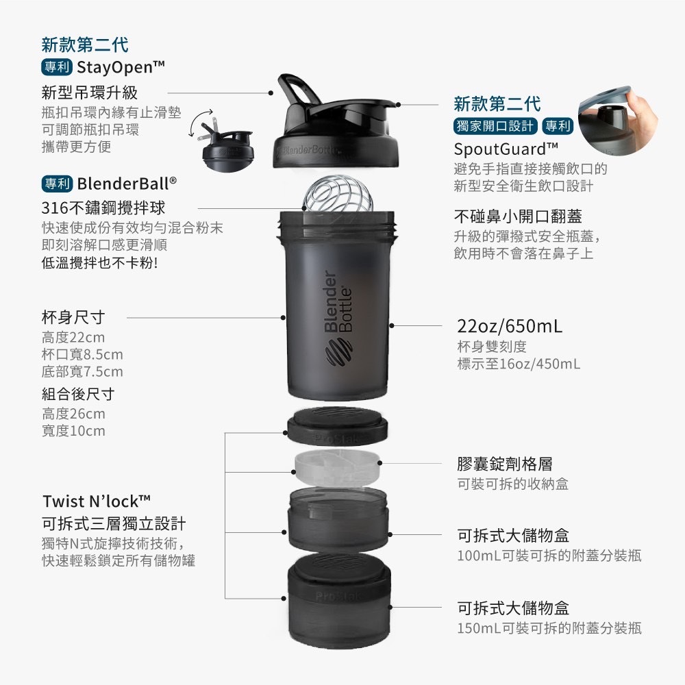 Blender Bottle Prostak 22oz 系列 2代 三層搖搖杯【素色-銀河灰】