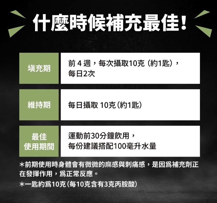 - GROWTH:身體吸收後會轉為肌肽,增加訓練的耐力與力量,促使肌肉的增長