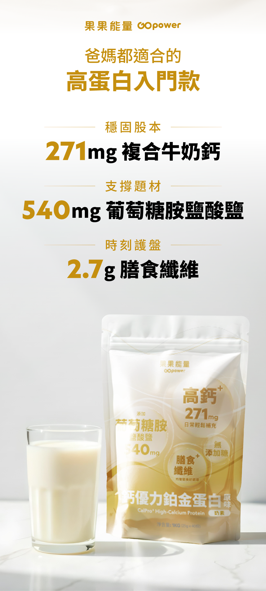 -鈣實力配方:每份含 272mg 複合牛奶鈣