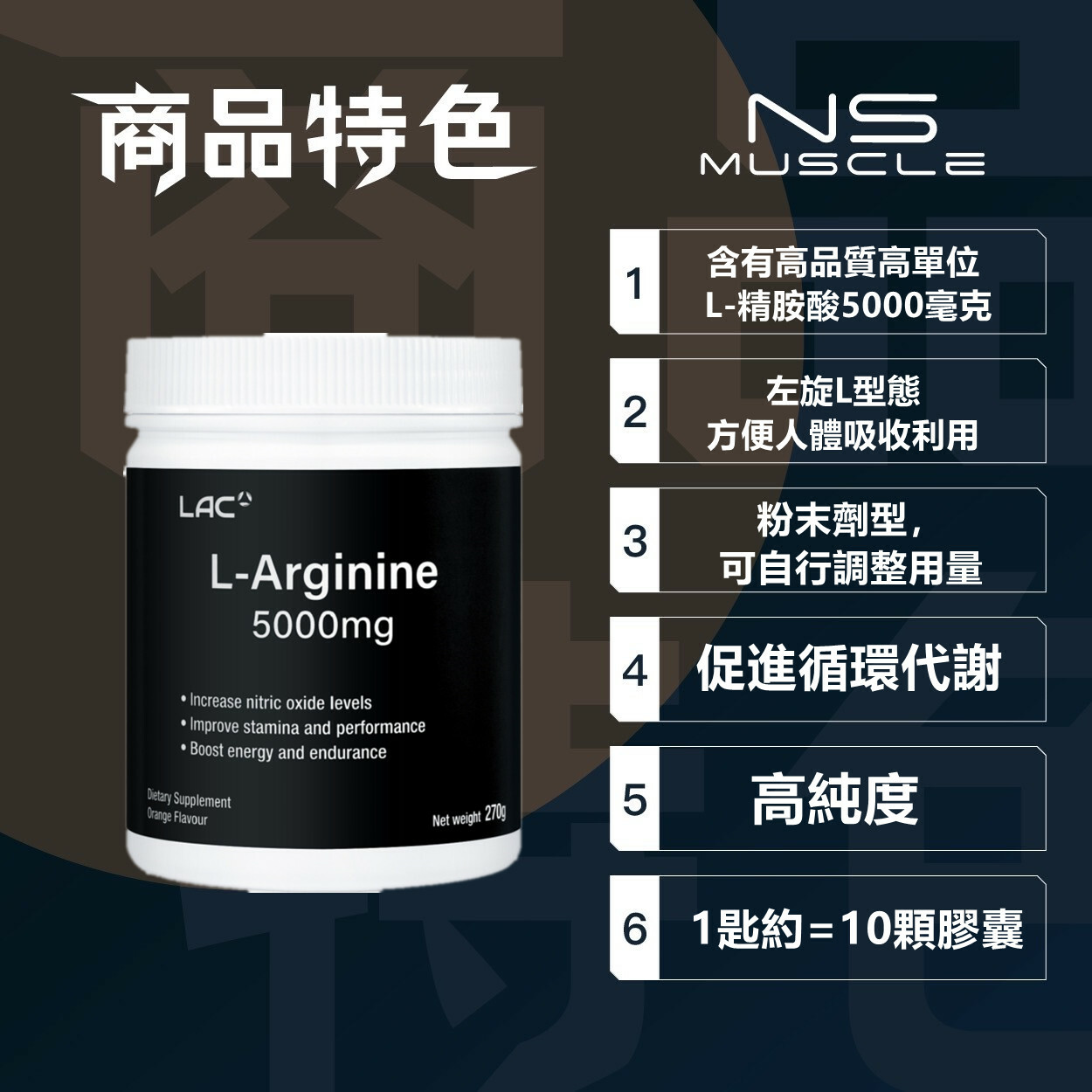 - 每份含有精胺酸5000毫克