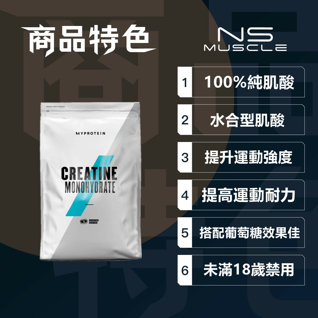 - 肌酸搭配葡萄糖,可提高肌酸吸收率以及發揮出更大效益!