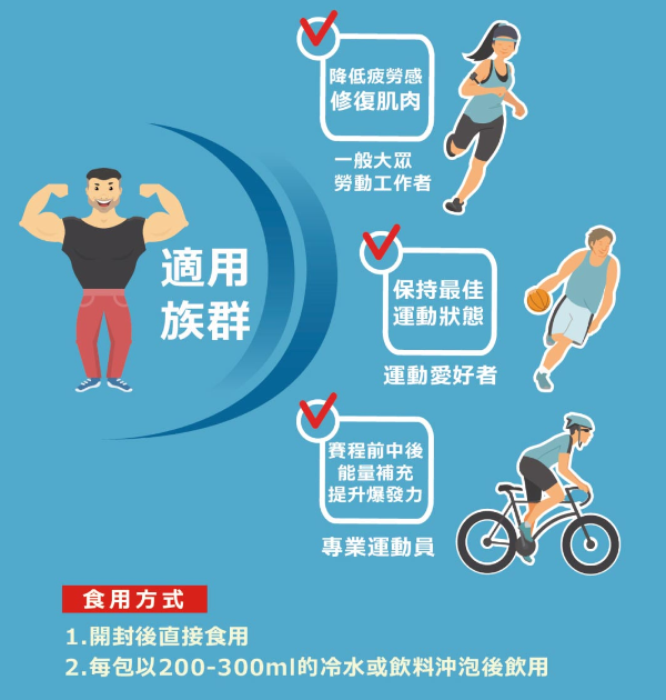 - 速溶 : 易溶解好吸收-速溶型BCAA,方便運動員飲用