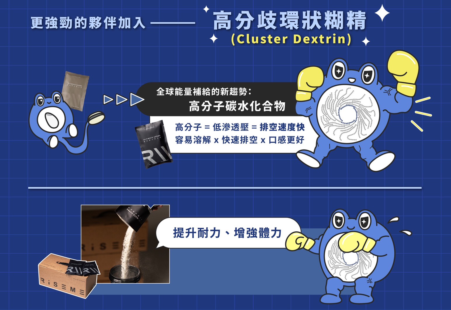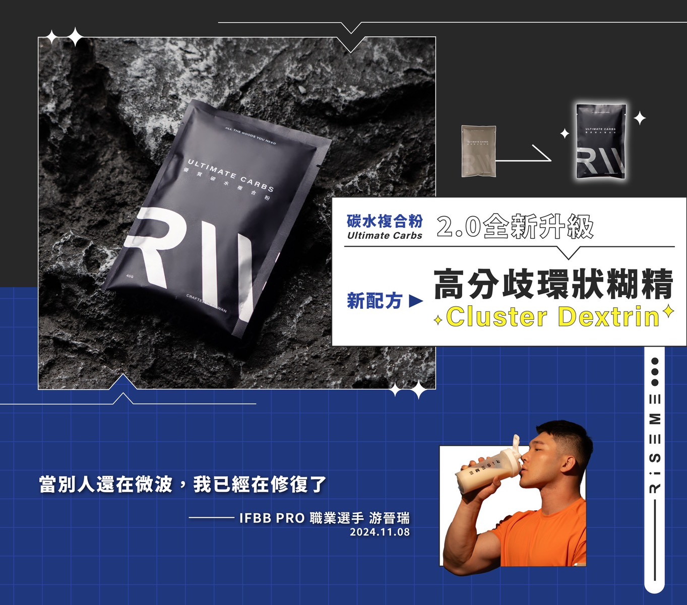 *碳水粉跟米糊的差別在於,碳水粉是複合式碳水配方,還有加高分歧環狀糊精,是滿熱銷的產品,因為他可以結合高蛋白也可以單喝,市場接受度會比較好