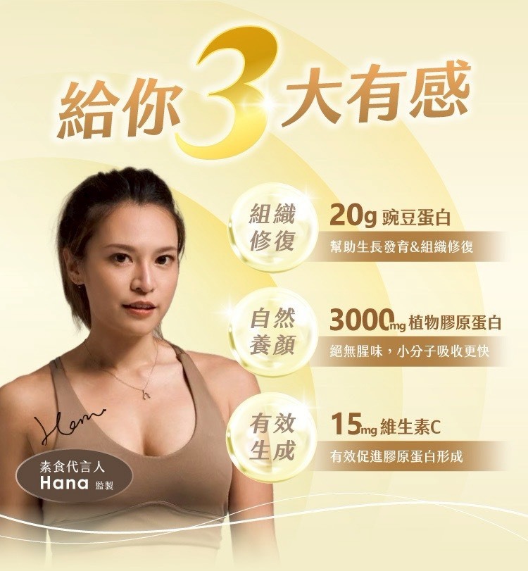 -一次補充雙蛋白(20g豌豆蛋白+3,000mg植萃膠原蛋白)