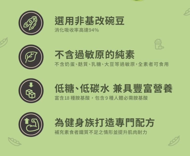 - 含多種人體必需胺基酸,可取代動物性蛋白