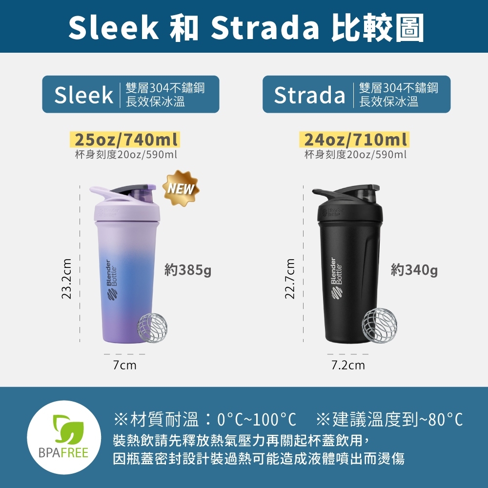【限時贈杯套】Blender Bottle Strada Sleek 25oz 不鏽鋼保冰搖搖杯 【史努比聯名款-粉紅小日子】